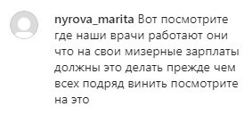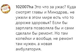 Пользовательница nyrova_marita также поддержала сотрудников амбулатории. "Вот посмотрите где наши врачи работают. Они что, на свои мизерные зарплаты должны это делать? Прежде чем всех подряд винить посмотрите на это", - считает она.