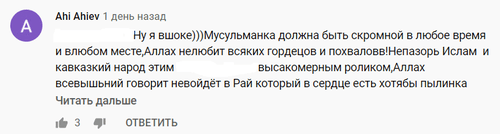 "Мусульманка должна быть скромной в любое время и в любом месте, Аллах не любит всяких гордецов [...] Не позорь ислам и кавказский народ", - прокомментировал Ahi Ahiev.