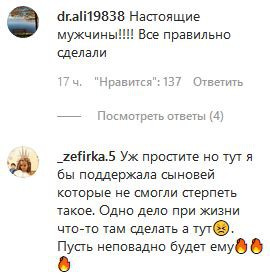 "Правильно поступили сыновья", - высказал свое мнение ism.nar.mag. "Правильно сделали. Чё их доставлять [в полицию]", - написал tut_khasavyrt.
