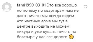 "Это всё хорошо, но почему по квартирам нам не дают ничего. Мы всегда видим, что частные дома. Мы тут в центре выходить не можем никуда и уже кушать нечего", - написал пользователь  fami1990_03_01.