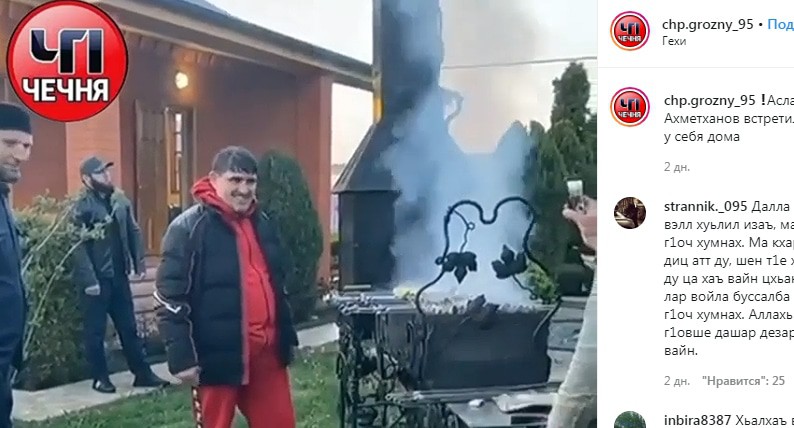 Сообщение о возвращении Ахметханова в Гехи было опубликовано 27 апреля в Instagram-паблике "ЧП/Грозный", насчитывающем 16,3 тысячи подписчиков. "Асламбек Ахметханов встретил месяц Рамадан (начавшийся в этом году 24 апреля. - Прим. "Кавказского узла") у себя дома", - говорится в публикации. Сообщение проиллюстрировано видеозаписью, сделанной во дворе дома. На кадрах видео показан улыбающийся Асламбек Ахметханов в окружении близких.