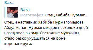 "Я знаю, насколько близки отношения между Хабибом и его отцом, и мне невероятно тяжело слышать о том, в каком состоянии сейчас находится Абдулманап. В этой нелегкой борьбе все мои мысли сейчас с ним и со всей семьёй Нурмагомедовых", - привел он 14 мая слова президента UFC Даны Уайта на официальном сайте UFC Russia. Абдулманап Нурмагомедов - это истинный представитель боевых искусств, который всегда придерживается принципов чести, достоинства и уважения, отметил Уайт.