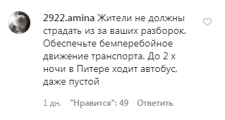 "Жители не должны страдать из-за ваших разборок. Обеспечьте бесперебойное движение транспорта", – написал в комментариях 2922.amina.