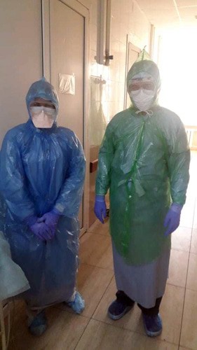 Реаниматологи надевали дождевики, заматывали скотчем открытые места, по одному заходили в палату, занимались пациентами. Когда выходили, обрабатывались спиртом сами и обрабатывали помещение. [...]