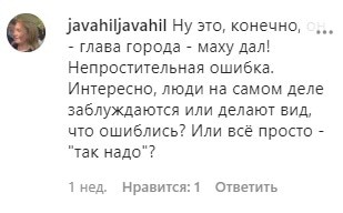 "Ну, это, конечно, он - глава города - маху дал! Непростительная ошибка. Интересно, люди на самом деле заблуждаются или делают вид, что ошиблись? Или все просто - "так надо"?" - задается вопросом javahiljavahil.