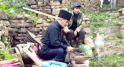 В последние годы значительно вырос спрос на ножи ручной работы, рассказывает кузнец Абдулла Магомедов, который уже 20 лет занимается обработкой металла. По его словам, после того как жителям Амузги в 30-х годах прошлого столетия запретили изготавливать холодное оружие, а затем середине 1940-х годов их переселили из аула, секрет известной по прочности амузгинской стали был утерян и до сих пор его не удалось восстановить. "Сейчас, конечно, уже есть более крепкая сталь. Но в те времена сравнить амузгинскую сталь было не с чем. Она была достаточно прочной и для ее обработки требовались специальные инструменты", – рассказал кузнец корреспонденту "Кавказского узла". Магомедов для демонстрации гостям амузгинской стали привез изготовленный из нее около 120 лет назад клинок.