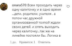 "Всем проходить через одну калиточку и в одно время: дети, родители, учителя. А потом час дружной организованной толпой ждали своих детей, и опять выходить через калиточку. Так же на линейке постояли бы", - написала пользователь onara570, комментируя видео с торжественной линейки в одной из школ, на которой присутствовал губернатор Владимир Владимиров. Видеоролик был размещен на его странице в Instagram 1 сентября, по данным на 0.28 мск 3 сентября его посмотрели 121 484 раза, пользователи оставили под ним 284 комментария.