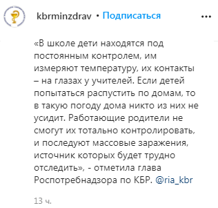 Ранее Пагов заявил, что массовое закрытие школы  связи с коронавирусом не планируется. "В школе дети находятся под постоянным контролем, им измеряют температуру, их контакты – на глазах у учителей", - приводятся его слова на странице Минздрава республики в Instagram. Он считает, что если детей попытаться распустить по домам, то  "работающие родители не смогут их тотально контролировать, и последуют массовые заражения, источник которых будет трудно отследить".