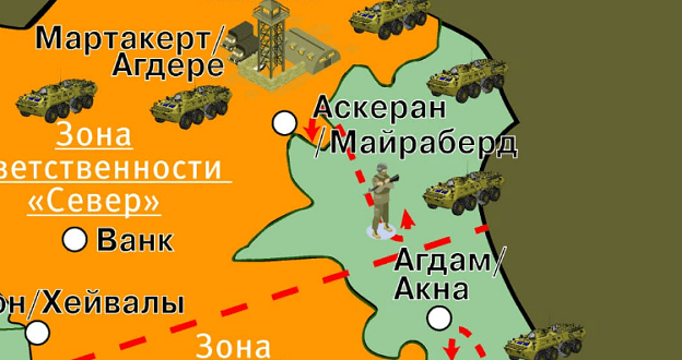 Миротворцы не могут обеспечить жителям Нагорного Карабаха безопасность, полагает он. «Русские стоят на дороге, а что мешает азербайджанцам проникнуть в наши села через леса? Русские не знают местность, никаких разграничительных линий, колючего забора нет», - рассуждает Арутюнян.