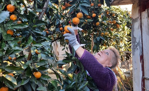 "В этом году хороший урожай мандаринов, лимонов и апельсинов, несмотря на засуху. В ноябре у нас прошел град и немного побил деревья, но не существенно. Обычно собираем с сада тонну-полторы, в этом году - две тонны", - рассказал мужчина.