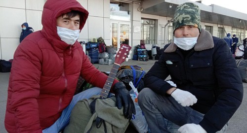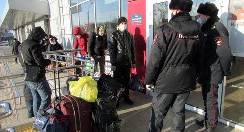 После полудня 12 декабря на привокзальной площади Волжского Волгоградской области стали собираться трудовые мигранты, отъезжающие в Узбекистан. Температура воздуха опустилась до отметки девять градусов мороза, поэтому многие граждане Узбекистана устремились в здание вокзала. Все они были в масках и перчатках. Сотрудники полиции постоянно напоминали пассажирам о необходимости надевать их перед входом в здание вокзала, передает присутствовавший на железнодорожном вокзале корреспондент "Кавказского узла".