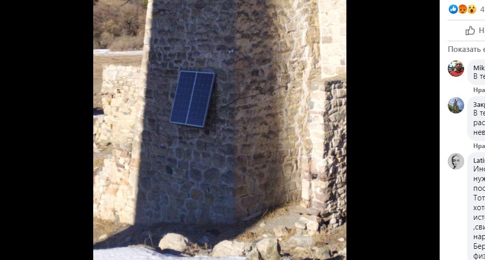 "При установке солнечной панели на исторический памятник ни один чиновник не пострадал", - иронизирует на своей странице в Facebook 8 января Магомед Батыжев, пост которого собрал девять комментариев. "А вот насчёт бюджета не уверен )))", - вторит ему Ислам Кодзоев. "Нанай-технологи", - пишет Ислам Оздоев. "Это что такое ??" - возмущен Zato Ichi.