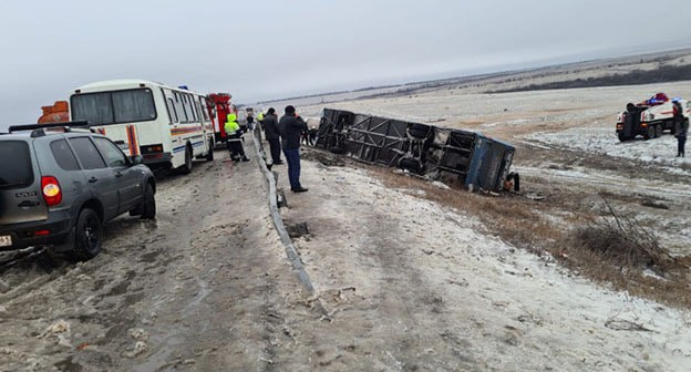 Администрация Красносулинского района Ростовской области выделила транспорт для перевозки к месту назначения пассажиров перевернувшегося автобуса, сообщили в отделе пропаганды УГИБДД России по региону.
