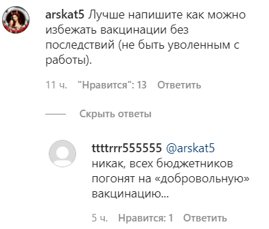 "Лучше напишите, как можно избежать вакцинации без последствий (не быть уволенным с работы)", - предложил arskat5.
