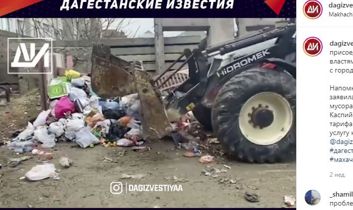 Напомним, что 4 февраля мэр Махачкалы Салман Дадаев сообщил, что в городе не успевают вывозить мусор из-за отсутствия спецтехники. Пользователи сети оценили ситуацию с вывозом мусора в городе как катастрофическую. Дагестанские чиновники пытаются оборачивать в материальную выгоду любую сферу своей деятельности, в том числе и вывоз бытовых отходов, что и является причиной переполненных мусорных баков, считают пользователи Instagram.