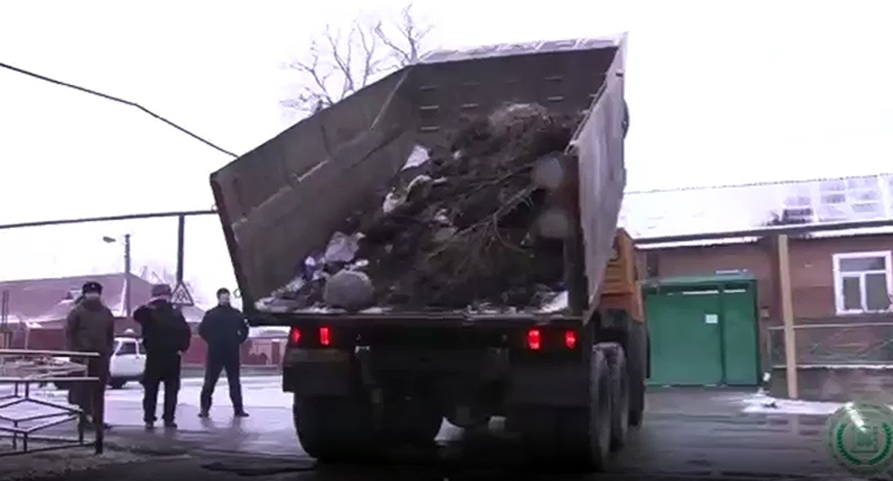 На видео также показан чиновник, объясняющий ситуацию. "Причина, по которой мы сегодня пришли – это несознательные граждане, которые так часто бросают здесь мусор, что мы не успеваем его убрать. Мы подключили к работе всех глав поселений, руководителей. И со вчерашнего дня здесь проводилась работа, а житель Нижнего Варандо Зурапов Ваха, который живёт по улице [здесь чиновник называет улицу и номер дома Зурапова. – Прим. "Кавказского узла"], он взял и бросил здесь мусор. Мы выявили адрес, поговорили с односельчанами и, следуя указу, который нам дали, привезли этот мусор сюда и высыпали у его ворот. В дальнейшем тому, кто так попадётся, кого мы поймаем, применим к нему все свои полномочия: штрафные, судебные, уголовные, положим вот так у ворот, опозорим и сверху накажем", – говорит на видео представитель властей, слова которого перевел с чеченского языка корреспондент "Кавказского узла".