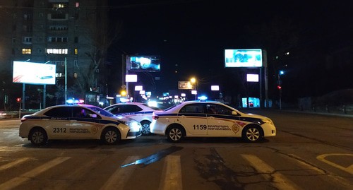 Проспект Баграмяна и улица Демирчяна в ночь с 14 на 15 марта остались заблокированными, автомобильное движение на этих участках перекрыто. Полицейские выставили свои машины на перекрестке Баграмяна с Прошяном и Прошяна с Демирчяном, передает корреспондент "Кавказского узла".