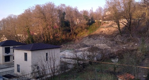 Лес на месте строительства в Орел-Изумруд вырублен, начиная от муниципальной дороги и заканчивая склоном, ведущим в горы, передал 1 апреля корреспондент "Кавказского узла". На вырубленных оползневых склонах ведется строительство коттеджей.