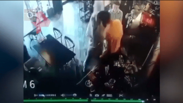 На видео, которым сопровождается публикация, три женщины проходят в помещение кафе, где за столиком сидит мужчина. Они проходят мимо. Мужчина оборачивается им вслед. Затем одна из женщин, в белом платье в пол и белом платке, возвращается назад. Мужчина привстает со стула и отворачивается к столику. В кадре появляется еще один человек, который сидел за тем же столиком, но в этот момент встал. Женщина в белом подходит к первому мужчине вплотную и что-то говорит, разводя руками. Мужчина встает и, не двигаясь с места, делает выпад головой вперед, и женщина отходит на шаг назад.