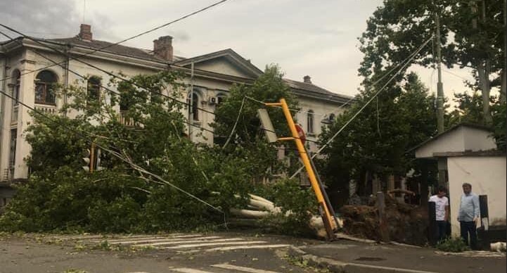 В результате сильного ветра в Сухуме оборваны электрические и троллейбусные провода, повалены около 50 деревьев, город обесточен. В ликвидации последствий аварии принимают участие сотрудники городских служб, МЧС и военные.