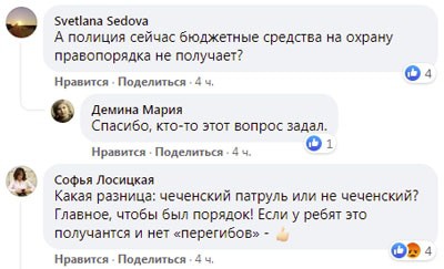 Еще одна часть пользователей высказалась против идеи патрулирования уроженцами Чечни. Другие пользователи напротив – высказались одобрительно. "Ну, кстати, проблему борьбы с бытовым хулиганством это хорошо решит", – считает Evgeny Milanovskiy.