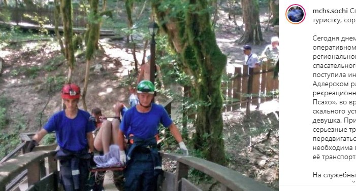 В Адлерском районе Сочи на территории рекреационного объекта "Каньон Псахо" во время фотосессии со скального уступа сорвалась девушка. Пострадавшая получила серьезные травмы и не может передвигаться самостоятельно, сообщили спасателям очевидцы.