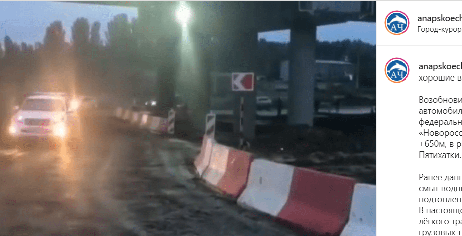Движение на подтопленном участке в Анапе возобновлено