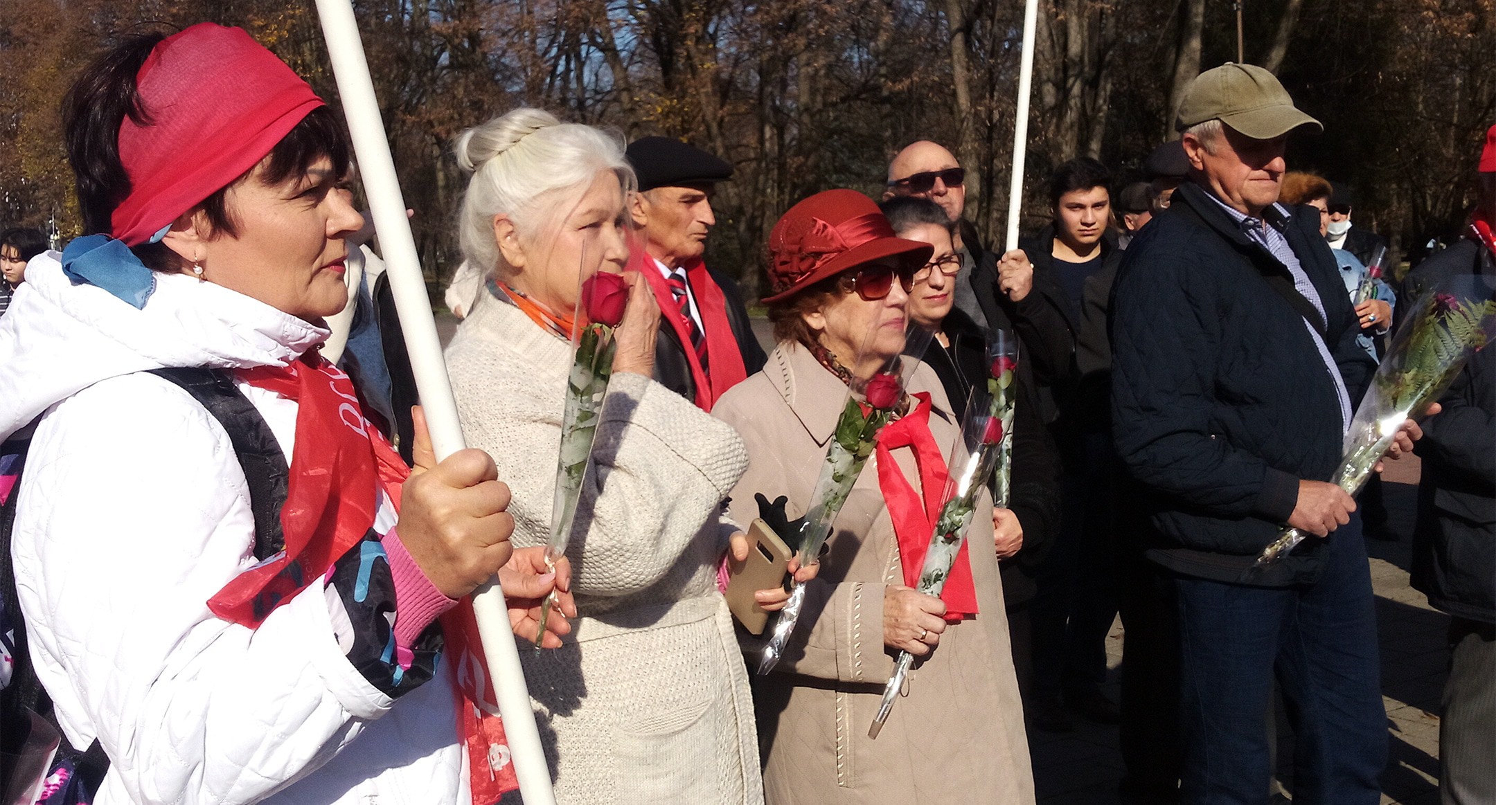 Люди разного возраста пришли сегодня в Нальчике на акцию, приуроченную реготделением КПРФ к годовщине Октябрьской революции. Они возложили цветы к памятникам Ленину и погибшим в гражданской войне.