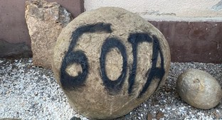 Неизвестный злоумышленник испортил экспонаты Музея каменных артефактов Виктора Котлярова в Нальчике, написав на них черной аэрозольной краской слова: "Камни не помогут, просите Бога", а на других камнях нарисовав черные кресты.