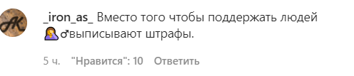 Авторы комментариев также раскритиковали власти за штрафы за нарушение ограничений.  "Вместо того чтобы поддержать людей, выписывают штрафы", – заметила _iron_as_.
