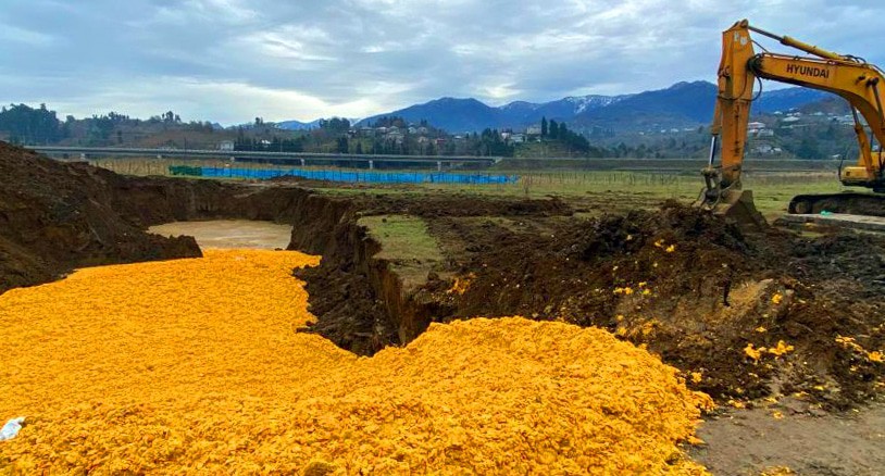 Акцию протеста провели жители села Цихисдзири с требованием убрать мусорную яму, куда местный завод по переработке мандаринов свозит отходы.