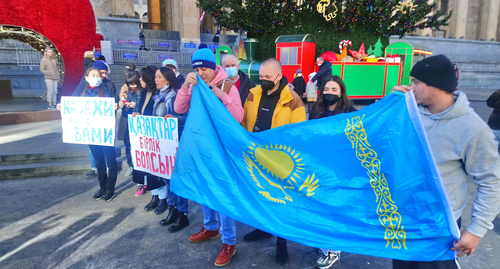 Как рассказали участники митинга, в связи с событиями в Казахстане несколько сотен человек не могут вылететь из Грузии. "Только сегодня я двух девочек смогла разместить у нашей одной девушки-эмигрантки, которая проживает в Тбилиси", - рассказала корреспонденту "Кавказского узла" Агюль Ушуманова. По ее словам, оставшимся в Грузии казахам помогают другие эмигранты, волонтеры и посольство Казахстана.