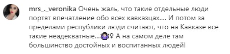 "Очень жаль, что такие отдельные люди портят впечатление обо всех кавказцах…. И потом за пределами республики люди считают, что на Кавказе все такие неадекватные… А на самом деле там большинство достойных и воспитанных людей!" - указала mrs_._veronika.