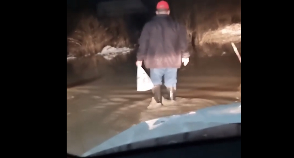 Также в паблике размещено видео с одной из улиц. Машина едет по сельской улице, залитой водой, дорогу переходят мужчины в резиновых сапогах, вода доходит примерно до половины голени. Пользователи в комментариях указали, что видеозапись сделана на улице Луговая в станице Северская.