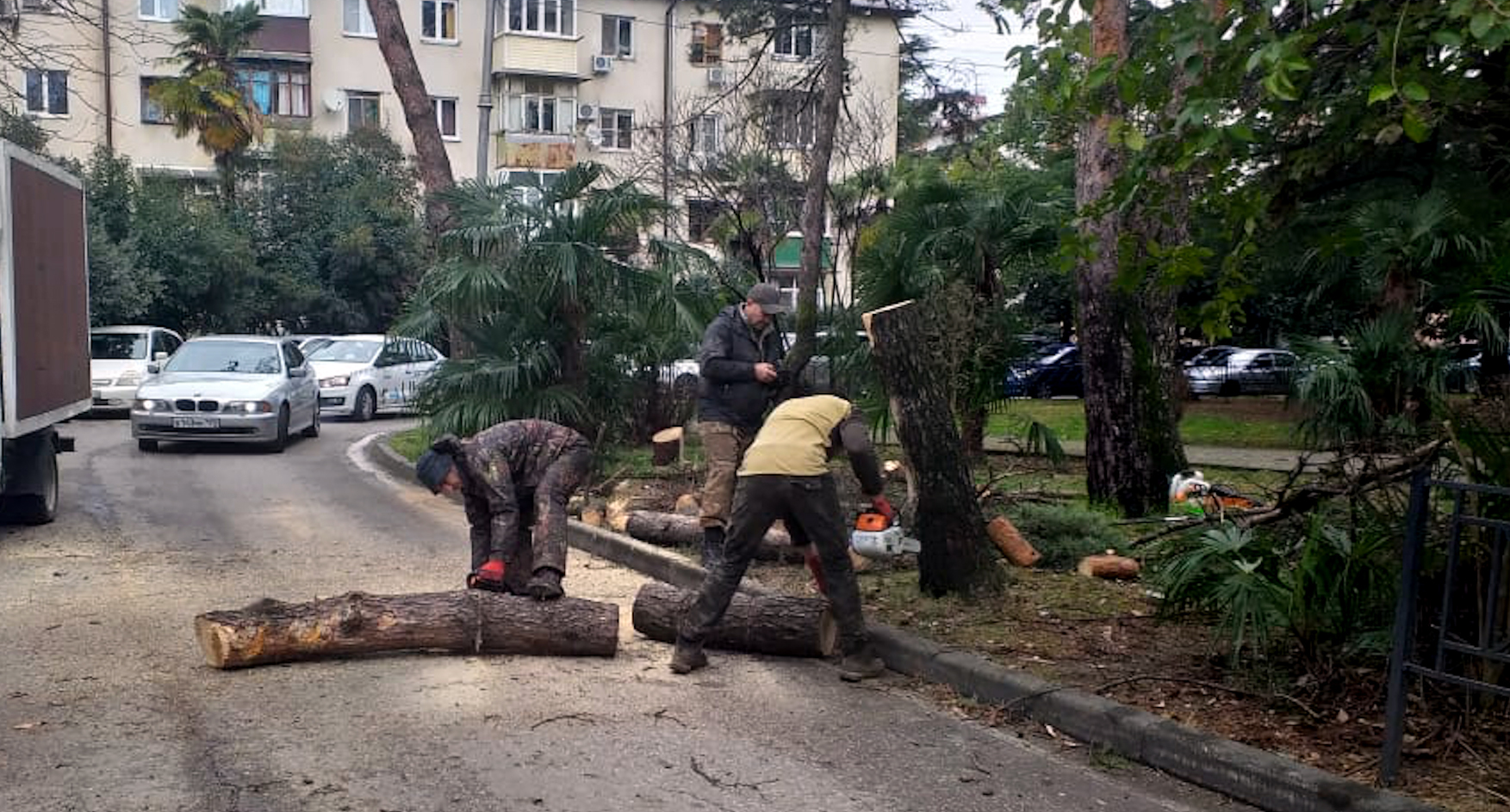 На Цветном бульваре в Сочи неизвестные спилили здоровые сосны. Разрешение давалось только на кронирование деревьев, сообщили в мэрии. По словам сочинцев, которые пытались воспрепятствовать уничтожению деревьев, последние годы вырубка деревьев в центре города ведется активными темпами, при этом не предоставляются документы, подтверждающие основания для этого.