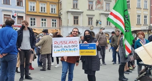 Представители чеченской диаспоры в Европе 19 февраля приняли участие в антивоенных митингах, которые организовала украинская диаспора. Акции прошли, в частности, в Австрии и Германии, пишут "Кавказ.Реалии"*.