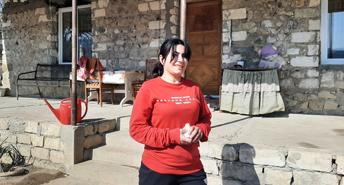 Валя Саркисян рассказала, что женщины и дети во время осенней войны 2020 года были эвакуированы в Армении, но, когда война закончилась, она уже 15 ноября 2020 года вернулась в свое село. "Застала свой дом разрушенным. Ничего не уцелело. А село было пустым – только мужчины-ополченцы. Мы с мужем поселились в доме у родственников. Потом начали медленно приезжать остальные семьи. И жизнь начала восстанавливаться. Потом нам в июле прошлого года выделили этот дом, и мы начали понемногу приобретать кур, домашнюю утварь. Родился внук – единственная радость пока", – рассказала Саркисян корреспонденту "Кавказского узла".