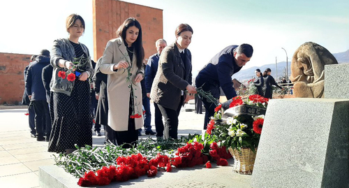 На Мемориальном комплексе в Степанакерте днем 28 февраля официальные лица и жители Нагорного Карабаха возложили цветы к памятнику жертв погромов армянского населения в Сумгаите в 1988 году.