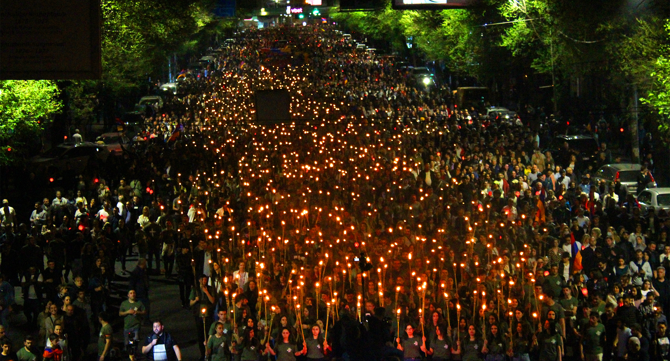 Как писал "Кавказский узел", 23 апреля факельное шествие в память жертв геноцида армян в Османской империи прошли и в Степанакерте. Все страны мира должны осудить геноцид армян и признать его преступлением против человечества, заявили участники акции. В Ереване участники факельного шествия сожгли флаги Турции и Азербайджана, а также потребовали от властей Армении отказаться от политики территориальных уступок.