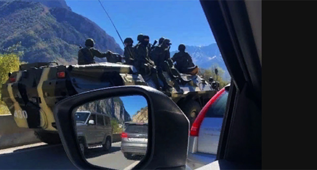 О появлении БТР с военными сообщили сегодня и пользователи "ВКонтакте" в паблике "Ситуация на КПП "Верхний Ларс". "Стоим в пробке, 7 км до КПП. Минут 30 назад в сторону Верхнего Ларса проехала военная колонна с БТР", - написал, в частности, Николай Фролов.