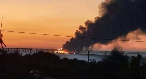 Цистерна с топливом, по предварительным данным, горит на одном из участков Крымского моста, судоходные арки не повреждены, сообщил сегодня советник главы Крыма Олег Крючков.