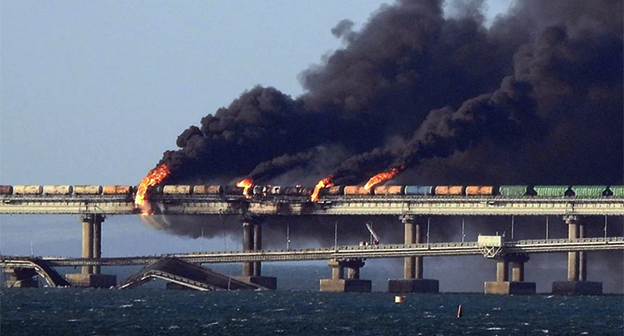 Как писал "Кавказский узел", утром 8 октября движение по Крымском мосту было полностью закрыто в связи с подрывом автомобиля. Национальный антитеррористический комитет сообщил, что в результате взрыва загорелись семь цистерн железнодорожного состава, а два автомобильных пролета моста частично обрушились. После этого Владимир Путин поручил охрану моста Федеральной службе безопасности.