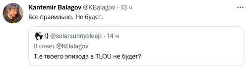 "Т.е твоего эпизода в TLOU не будет?" – уточнил в комментарии пользователь solarsunnysleep. "Все правильно. Не будет", - ответил режиссер.