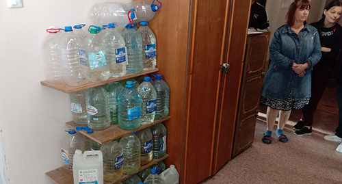 Она также рассказала, что жильцы дома набирают запас воды на случай отключения ее подачи, которые происходят часто.