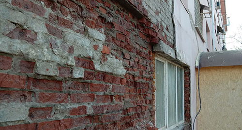 Кирпичи, из которых сложены стены здания, на ощупь влажные и хрупкие, передал корреспондент "Кавказского узла".
