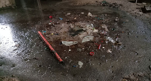 Корреспондент "Кавказского узла" осмотрел 10 апреля подвал многоквартирного дома. Его помещения сырые, в подвале множество комаров, стоит неприятный запах, дно подвала затоплено водой. "Видите, я тут даже в бахилах пройти не смогу. Слышите, вода льется. Там труба протекает. И эта течь уже несколько месяцев у нас. Никто воду не откачивает и трубу не латает, хотя мы неоднократно жаловались в мэрию. Разрушается фундамент дома", – обратила внимание Олеся Бучина.