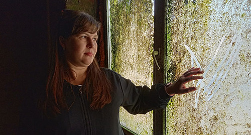 Многодетная мать Вера Адельчинова показала свою квартиру, которая, по ее словам, находится в самой опасной части дома – около стены, которая обрушается. За обоями и на пластиковых откосах окна образовалась плесень. Воздух в квартире влажный, тяжелый. По словам Адельчиновой, проветривание не помогает, а вентиляция не работает, передал корреспондент "Кавказского узла".