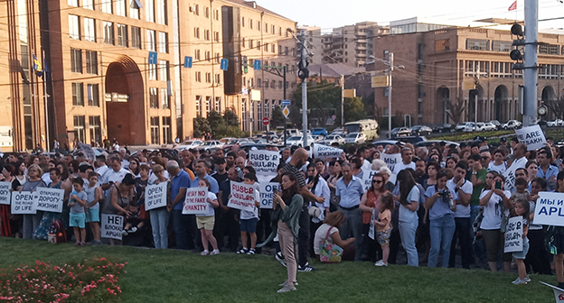 Организаторы акции протеста в Ереване обвинили власти страны в сдаче Нагорного Карабаха Азербайджану и пообещали начать 24 июля акции неповиновения с перекрытием дорог в столице.