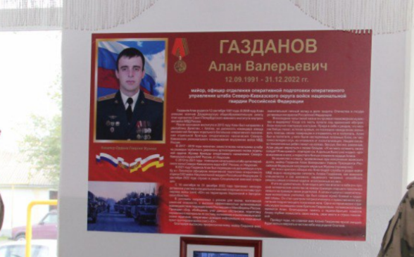 В селе Дзуарикау Алагирского района открыли мемориальные доски памяти военнослужащего Северо-Кавказского округа Росгвардии майора Алана Газданова, погибшего "при исполнении воинского долга", сообщает сегодня пресс-служба Северо-Кавказского округа войск национальной гвардии.