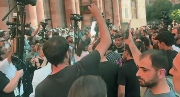 Протестующие у посольства России в Ереване потребовали защитить карабахцев